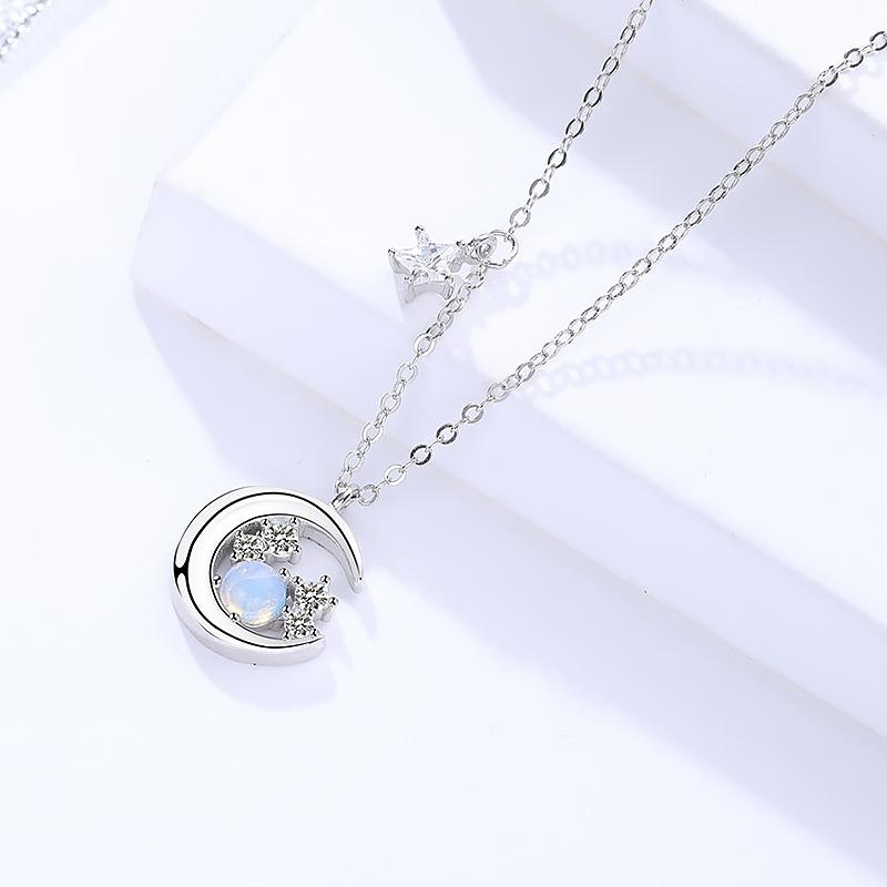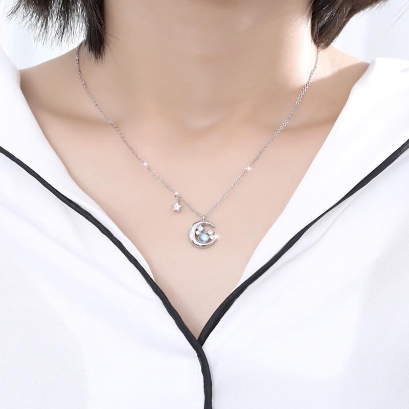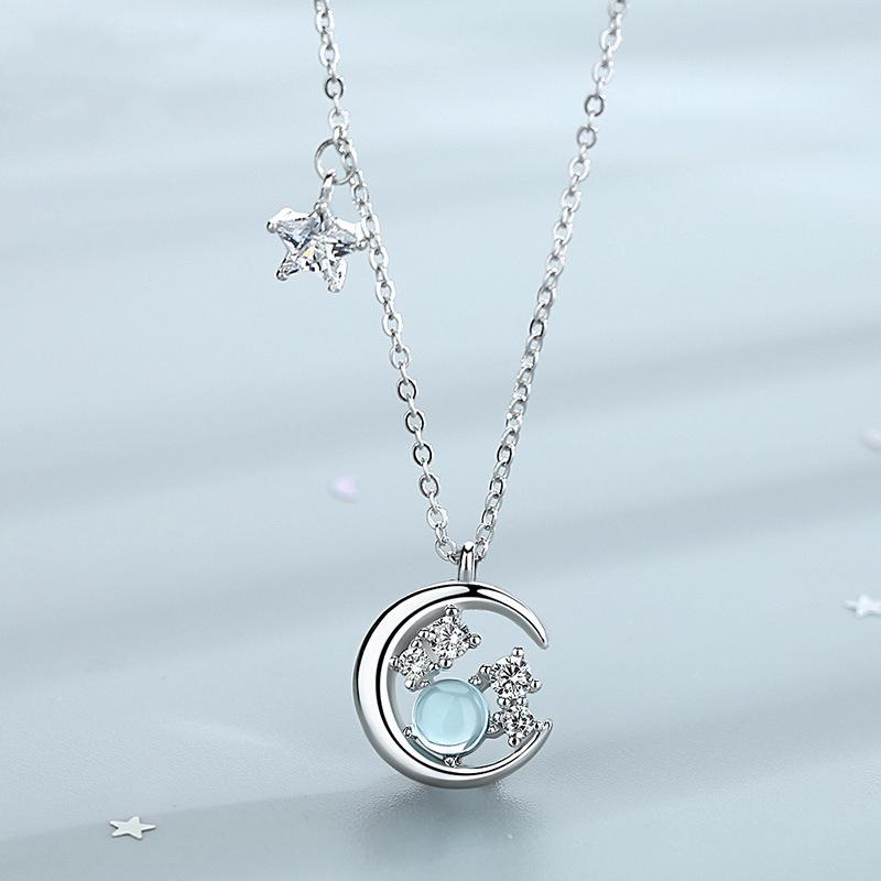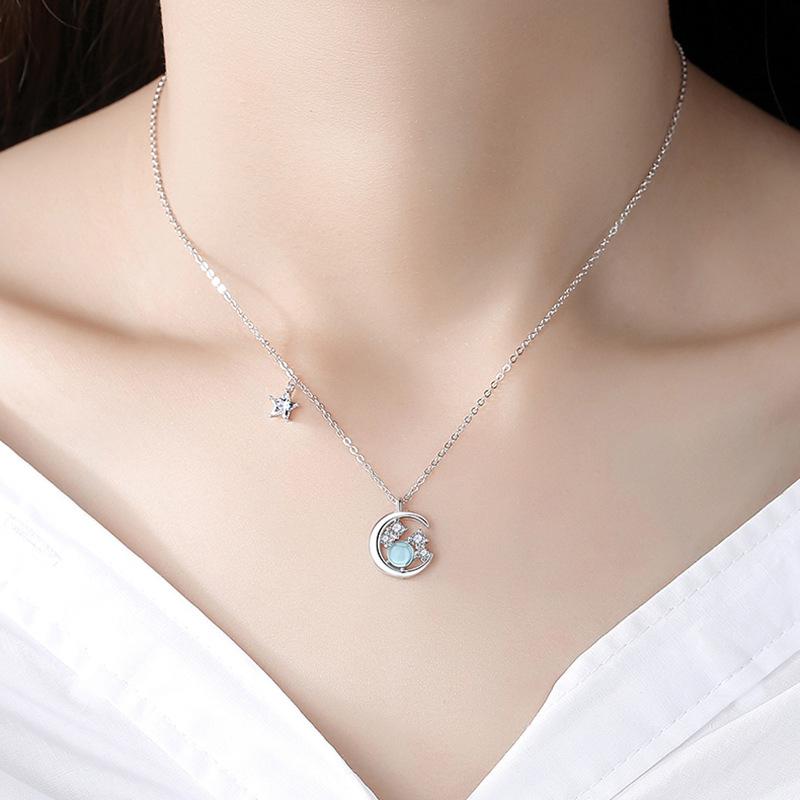 Du vil bli fascinert av månegløden og den himmelske sjarmen til dette måne- og stjerneanhenget! Glitrende med diamantaksenter og laget i polert sølv på et passe langt kjede. Dette vil være en omtenksom gave til en du er glad i. Fjæringspenne, halskjede med diamant-aksent stjerne og måneanheng.