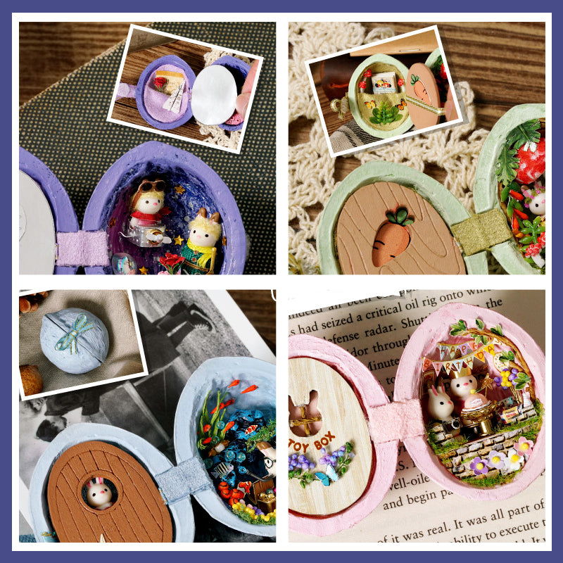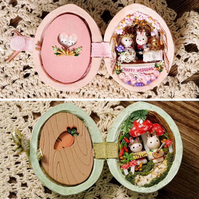• Innovativ design: Formen på dette minidukkehuset er et hus laget av harpiksmateriale valnøtt, og den søte kaninen bor i dukkehuset.